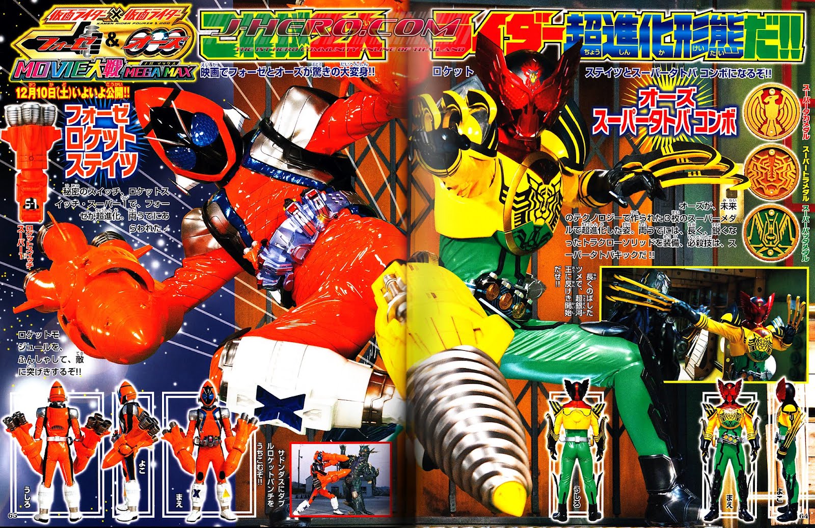 A Rocket States do Kamen Rider Fourze pode ser acessada através do uso da switch Super-1 Rocket enquanto a forma Super TaToBa de Kamen Rider OOO acontece pelo uso das medalhas Super Falcão, Super Tigre e Super Gafanhoto do futuro.